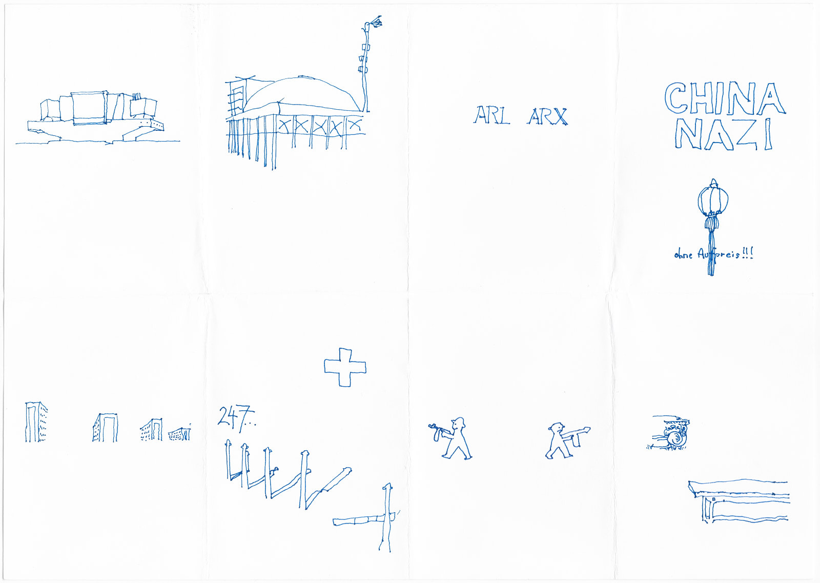 Spazierengehen ist eine weniger rasante, aber immer noch relativ schnelle Betätigung. Spazierengehen und Zeichnen entschleunigt das Spazierengehen und streckt es. Es beschleunigt gleichzeitig die Handlungen zwischen dem Erfassen der Komplexität der Dinge und den Vereinfachungsprozessen der zeichnerischen Übertragungen, Interpretationen, Notierungen. Es bietet Raum für eine Intensivierung von Wahrnehmungsprozessen, die sich in anderen Bewegungsformen und Kontexten vielleicht nicht derart entfalten können. Es ist künstlerische Übung und künstlerischer Prozess.